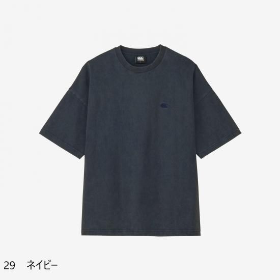 ストーンウォッシュ加工することでフェード感を強め、こなれた雰囲気に仕上げています。シルエットは、身幅やアームホールに余裕を持たせたボックスタイプで、左胸にロゴ刺繍が入ります。カンタベリーのゆるぎない価値である「TOUGH(タフ)」を体現したシリーズです。