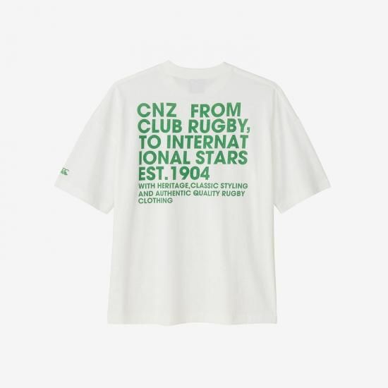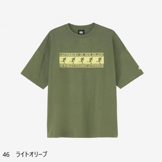 シルエットは、身幅やアームホールに余裕を持たせたボックスタイプで、「RUGBY ATHLETICS」をテーマに、ブランドロゴやタグラインを配したデザインになっています。