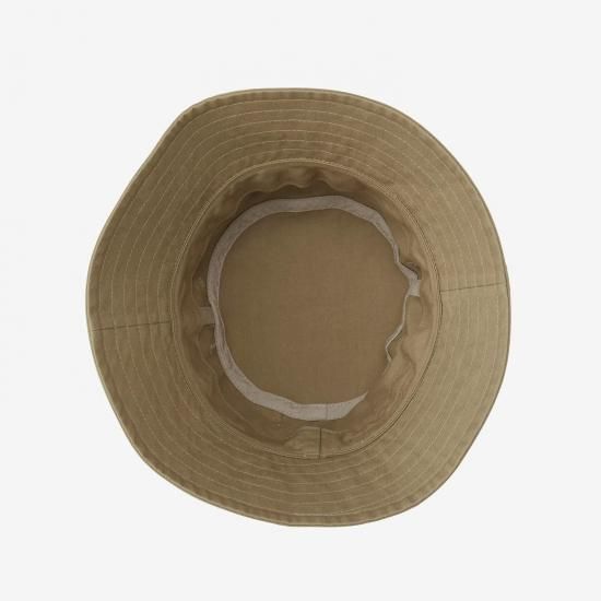 ロゴ刺繍は同色系で表現、コーディネートのしやすいバケットハットに仕上げました。