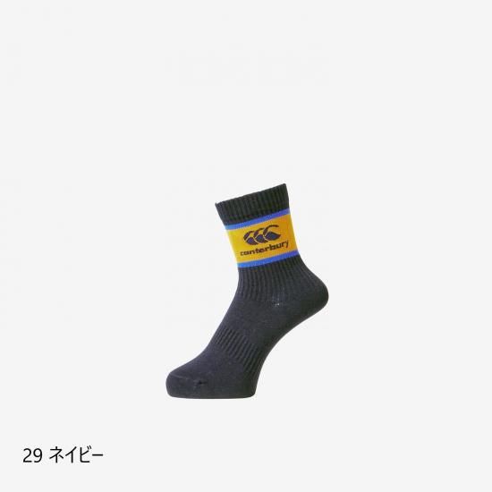 配色のライン使いでロゴをアクセントにしたコットン素材ベースのJR.サイズミドルソックスです。