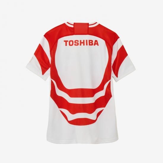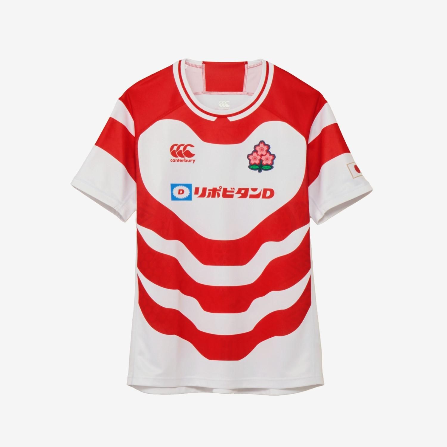 ラグビー男子日本代表レプリカジャージーです。日本代表の躍動感、力強さを表現するモチーフとして歌舞伎の隈取に着想を得て、デザインに取り入れました。